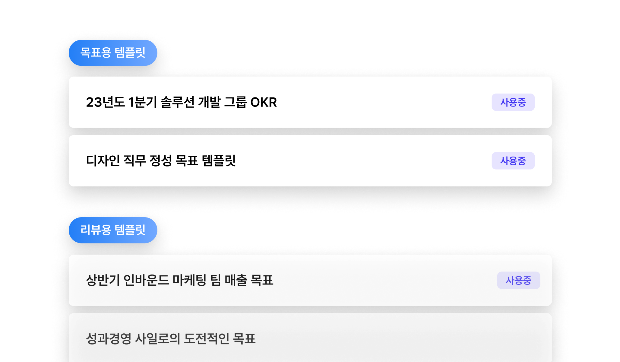 직무별 맞춤 목표수립 템플릿과