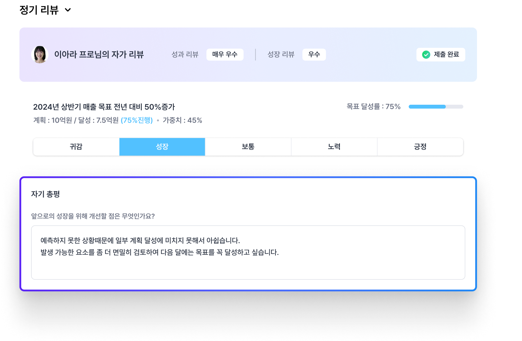 구성원의 성과에 대한 정기/수시 리뷰를 진행해 보세요.