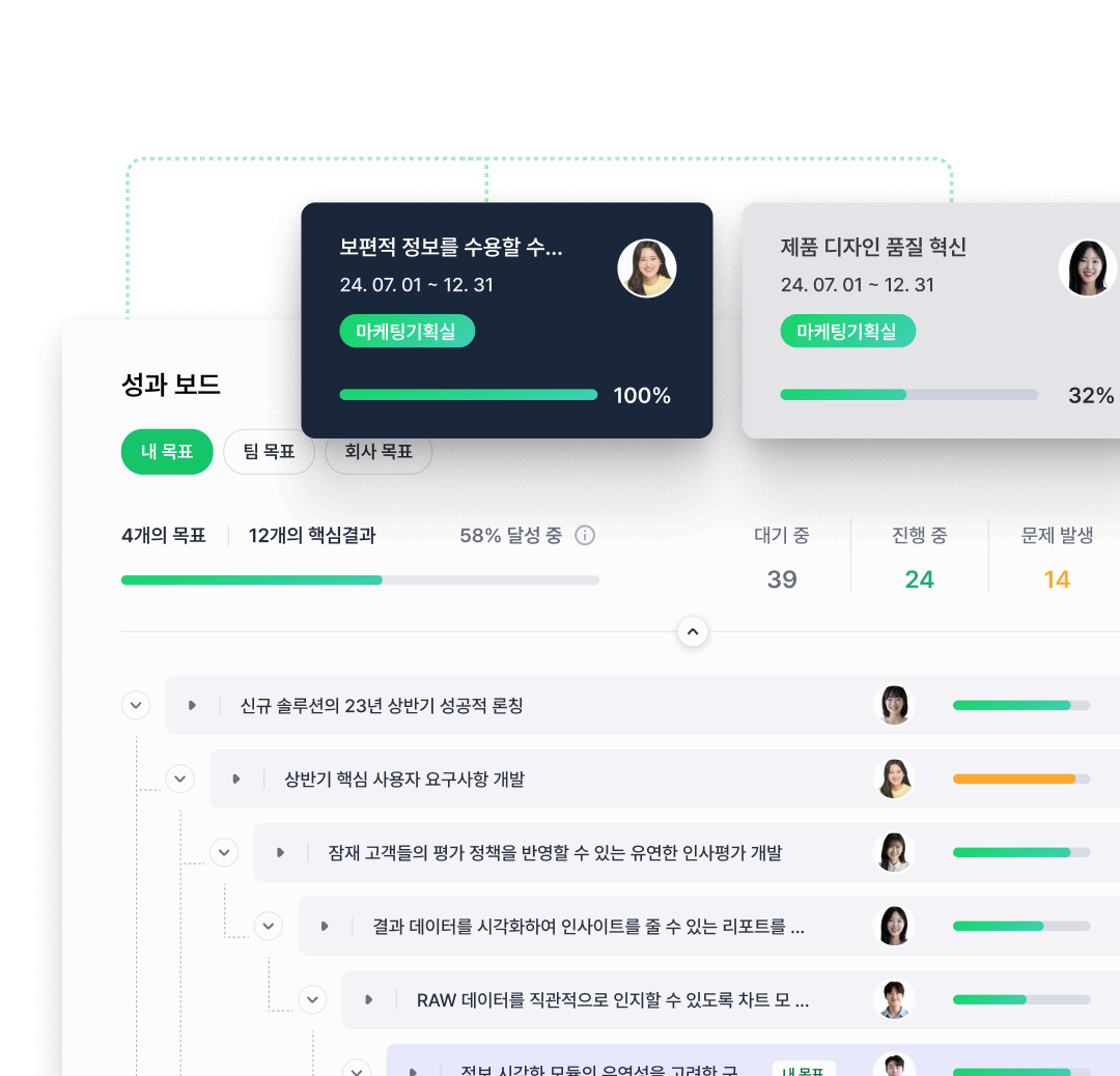 정렬하여 조직 전체의 목표와 연계할 수 있어요.